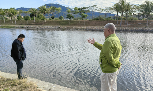 研究院首席科学家王庆中在三亚考察硅藻河水治理工程现场。