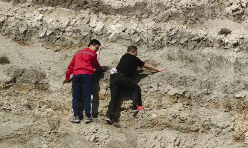 研究院考察团队与矿山总局勘探人员考察河北硅藻矿现场。