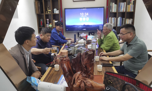 研究院考察团队与和其泰李董事长洽谈硅藻用于新能源过滤技术问题。