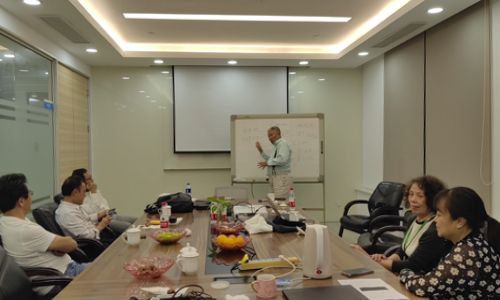 研究院首席科学家王庆中在公司上海办公室给新加坡股东做水处理演示。