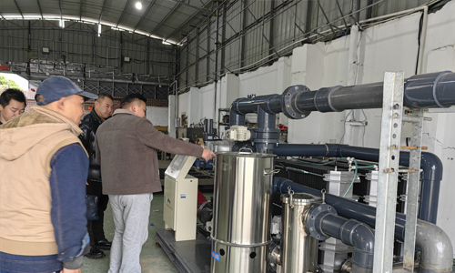 研究院考察团队在广东考察硅藻泳池水处理机。
