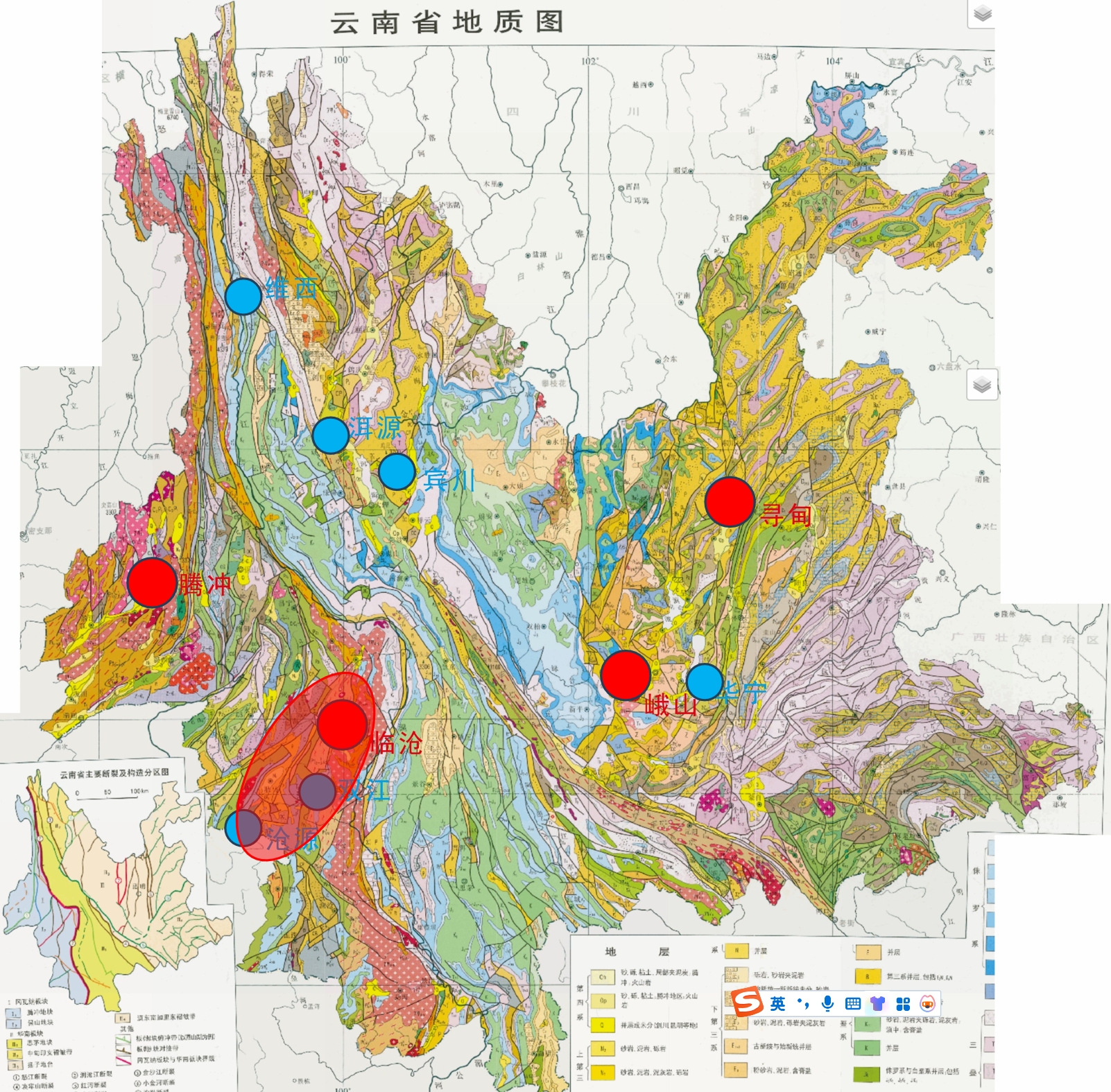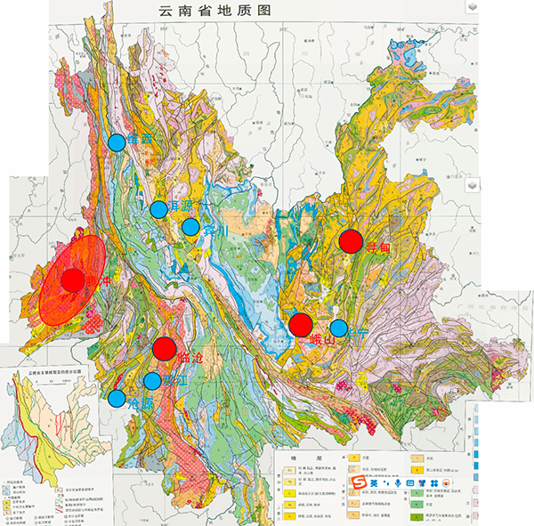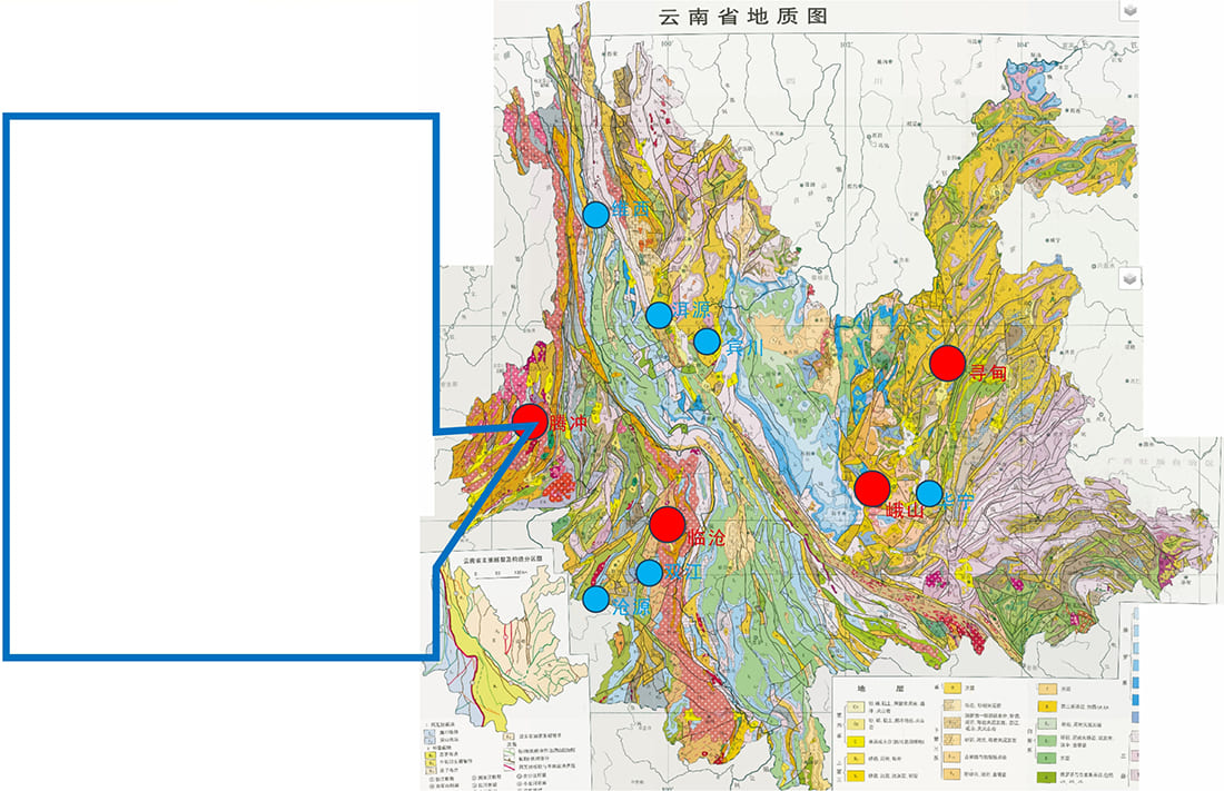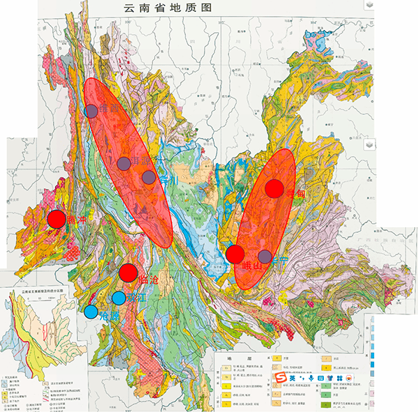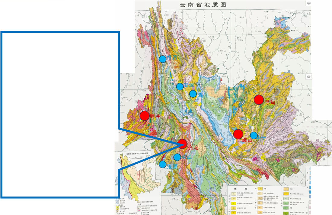 集中分布于滇西南的临沧-沧源地区,有临沧邦卖、临沧勐托、双江芒孝和沧源勐省等矿床(点)。