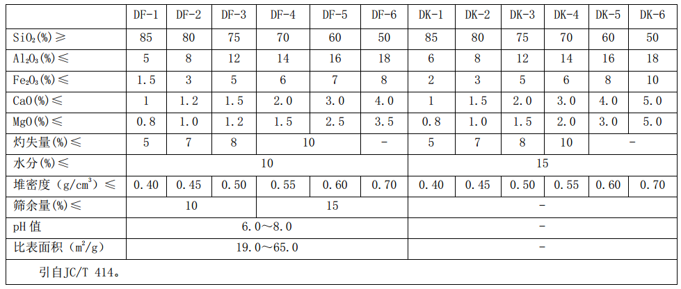 | 硅藻土 | >1000 | 1000~400 | <400 |