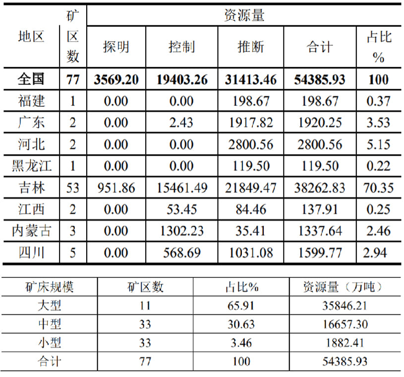 | 引自《矿产资源/储量规模划分标准》(国土资发[2000]133号)。 | |||||